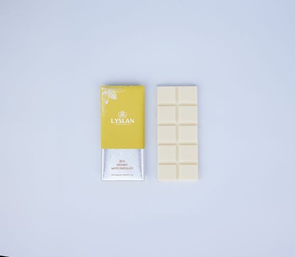 Sô-cô-la trắng Lyslan đậm đà, hòa quyện cùng vị ngọt ngào của dừa Bến Tre, mang đến sự tận hưởng mượt mà.